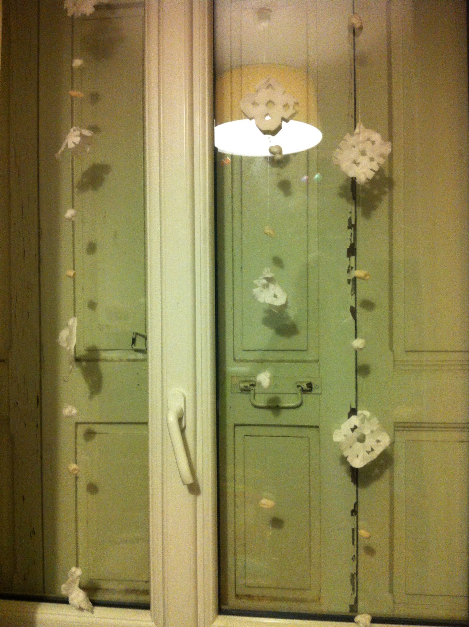 Nous avons réalisé plusieurs grandes guirlandes que nous avons pendues « à la verticale » sur les fenêtres de la chambre des garçons,