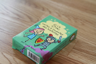 À la maison, nous avons reçu 52 cartes pour raconter des histoireshttp://www.editions365.eu/fr/cartes-d-activites-jeunesse/187/jeux-activites-52-cartes-a-inventer-des-histoires.html.