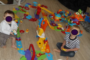 Ils adorent l’ascenseur (c’est vrai que c’est assez magique de vois la petite voiture s’élever toute seule) alors que numéro 4 est plutôt fasciné par le déclenchement des engrenages. Et je dois dire que je suis bluffé par l’imagination et la créativité des concepteurs de chez Vtech!