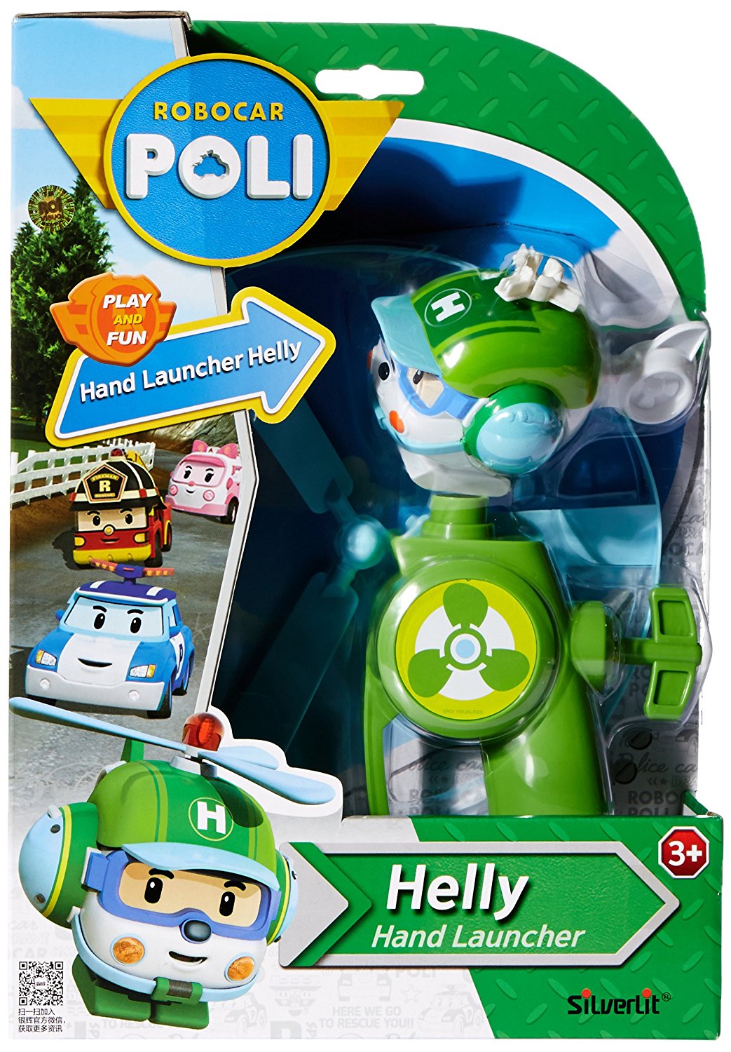 On le pose sur une sorte de ‘pistolet’, on tire sur la ficelle et quand elle se rembobine, Héli est projeté en l’air et redescend doucement comme un vrai hélico! C’est génial! (les plus petits ont besoin d’un coup de pouce mais ils prennent vite le coup de main!)